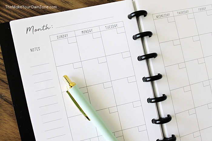 2 – Paper Trimmer: The printables for the junior size are printed in landscape orientation and then cut in half. So if you choose to make a junior size planner, a paper trimmer is a good idea as it gives you a nice clean cut for a professional looking planner. I bought my paper trimmer at the craft store, but there are many choices on Amazon too such as this 14″ paper trimmer.
