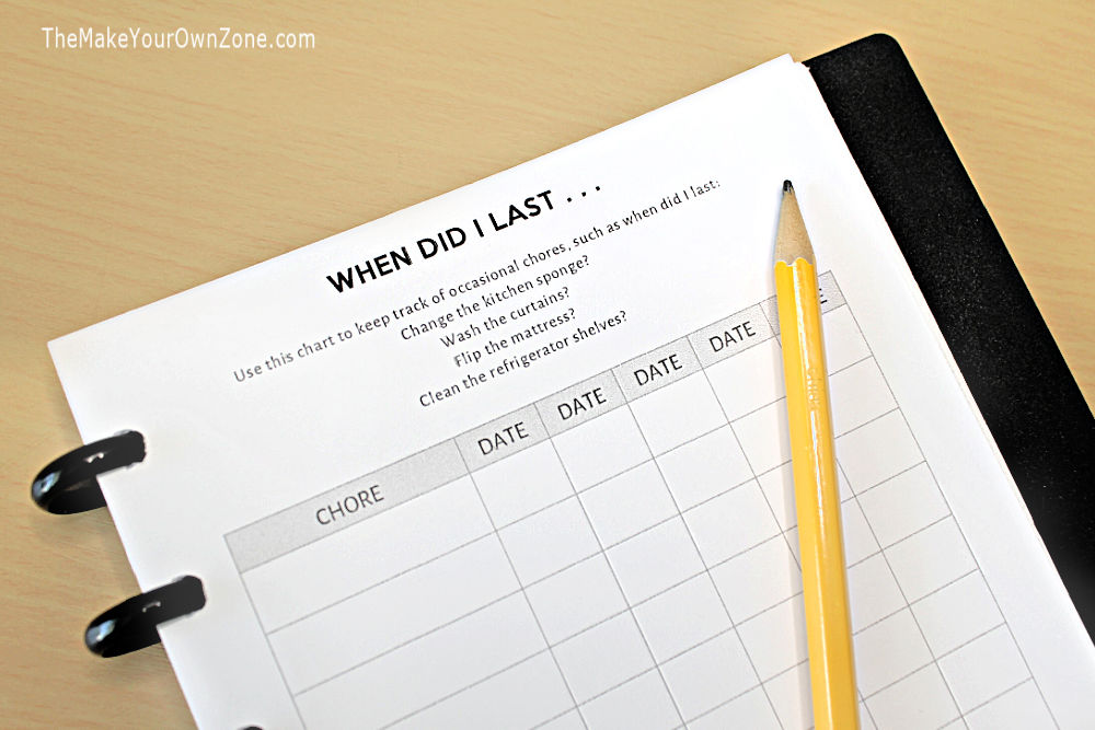 When Did I Last . . . (a helpful chart to track occasional chores) – NEW!