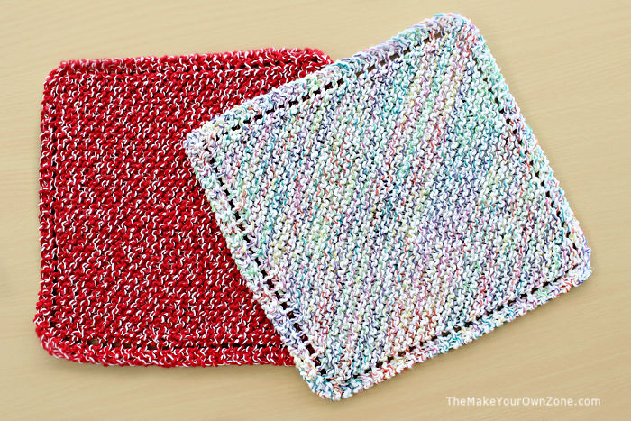 In response to your frustration with not having enough to complete another one: I take 2 colors of leftover and do the slipknot with the colors together and cast on with both together. Then I split them and knit across and back and switch colors. It works really well and creates a set of 3 dishcloths!