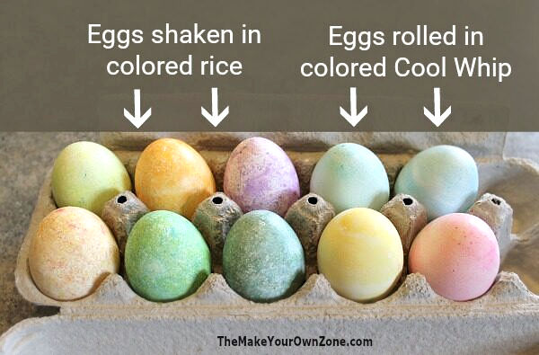 Are you looking for a different way to put your food coloring to good use for Easter eggs this year, but want to do something besides the usual dipping? Then maybe rice and Cool Whip will be just what you need!